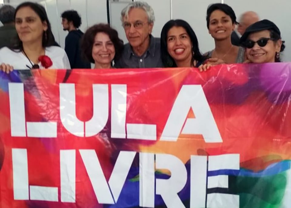 Caetano Veloso se apresentou no festival Cantares, na tarde de sábado (27), na Cidade do México. Nos bastidores de sua apresentação, o cantor brasileiro esteve reunido com militantes do ‘Coletivo Regina de Sena México-Brasil contra el Golpe’ e pousou para fotos com a bandeira Lula Livre denunciando de forma internacional a prisão política do ex-presidente, detido há mais de 1 ano em Curitiba (PR).