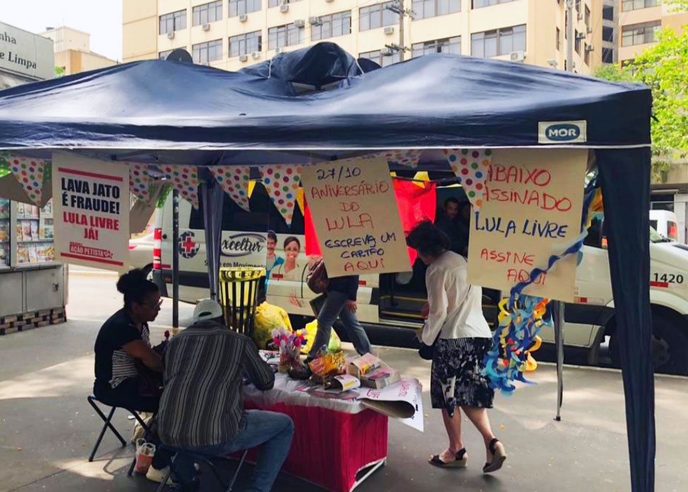Tem sido assim toda quinta-feira à tarde, em frente ao Hospital de Clínicas, onde é montada uma barraca ‘Lula Livre’ impulsionada pelos companheiros do DAP da região da avenida Paulista e do Quarteirão de Saúde. Esta iniciativa conta com apoio do Sindicato dos Trabalhadores Públicos da Saúde no Estado de São Paulo e do coletivo Flores pela Democracia.