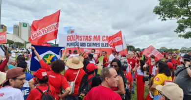 Em ato no dia 18 de março, sindicalistas e militantes do Diálogo e Ação Petista entregaram na portaria da embaixada do Chile em Brasília uma moção exigindo a imediata liberdade para os presos políticos da Revolta do final de 2019. Foi entregue também a carta de Elisabeth Carrillo, mãe de um dos presos, dirigida aos senadores chilenos que integram a Comissão de Direitos Humanos do parlamento.
