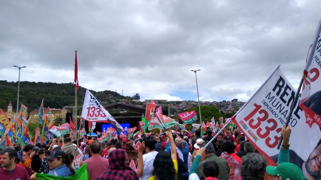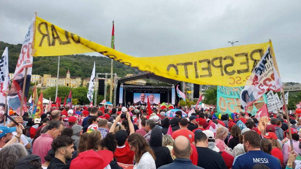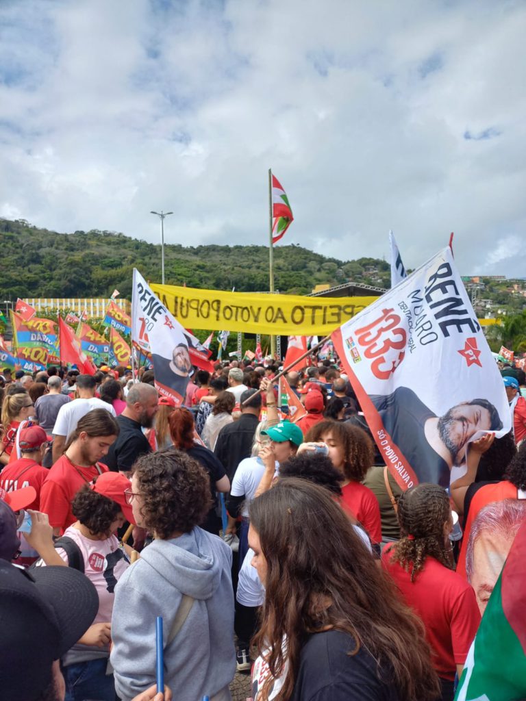 A Praça Tancredo Neves, no centro de Florianópolis, ficou abarrotado de gente neste domingo, 18, no comício Lula Presidente. Num estado onde Bolsonaro ainda lidera nas pesquisas, o ato foi um indicativo de que as coisas podem mudar nessas duas semanas que restam até o 1º turno. O candidato a governador Décio Lima (PT) afirmou que Santa Catarina proporcionará a Lula o pouco que falta para uma vitória definitiva já em 2 de outubro.