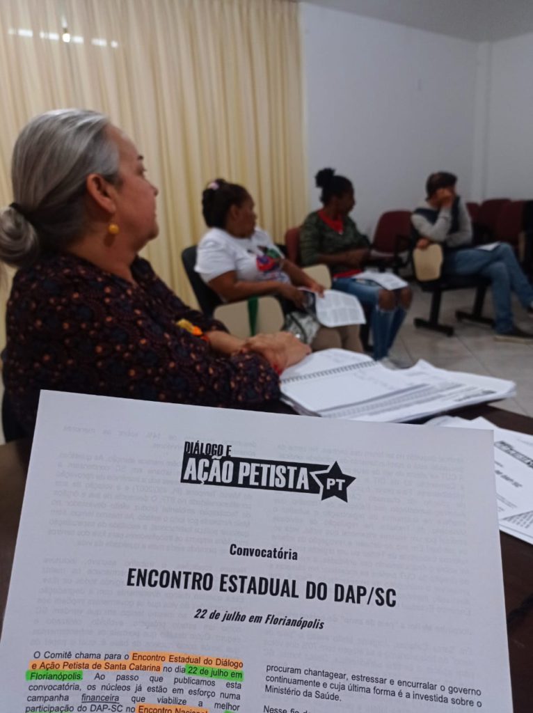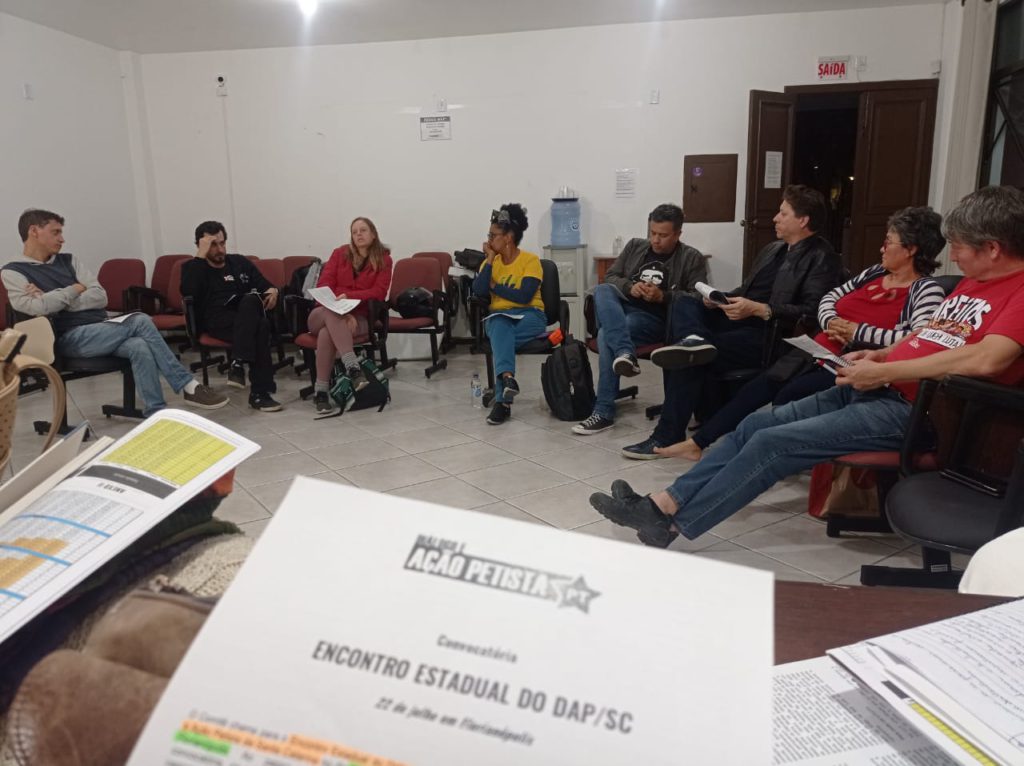 Como pontos de pauta foi feito um breve histórico do Dap pela companheira Juçara Rosa, análise da conjuntura baseada na convocatória do comitê do DAP estadual pela companheira Roberta Zimmer. Os inscritos para o debate refletiram sobre a situação da guerra na Ucrânia e seus reflexos para classe trabalhadora, o problema que atravessa o Estado de SC com Jorginho Mello governador bolsonarista eleito nas eleições 2022, entre os outros temas. Por fim, foi discutido o Encontro Nacional do DAP elegendo os delegados do núcleo e encaminhamos ações. Entre elas, a participação nas arrecadações propostas pelo comitê estadual do DAP.