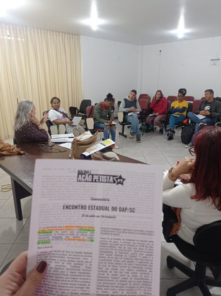 O núcleo Dap municipais de Florianópolis/SC se reuniu no dia 5/7, estavam presentes 13 companheiros da base.