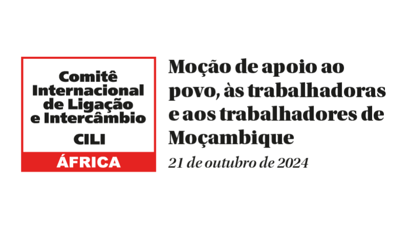 Publicamos abaixo a moção de apoio do CILI África ao povo, às trabalhadoras e aos trabalhadores de Moçambique.