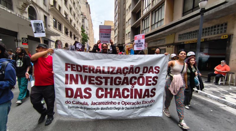 O ato convocado pelo Comitê da Campanha pela Federalização das Investigações da Chacinas, reuniu diversas organizações, coletivos de mães e de negros, movimentos de moradia, sindicatos e parlamentares; todos que, por diversos motivos, sofrem com a truculência policial. Essa construção unitária esteve presente no percurso do ato, que se concentrou no Theatro Municipal, palco importante na história do movimento negro, e passou pela Secretaria de Segurança Pública, Ministério Público, encerrando na Praça da Sé.